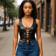 Turn heads and own the night in our sleeveless brown multi wrap halter top — a bold Y2K streetwear and festival essential. Crafted from silky, stretch fabric in a rich brown hue, this daring top features a plunging cutout neckline, backless design, and a luxe gold chain medallion accent for instant glam. Extra-long wrap ties let you style it your way — from crisscross halter to twisted scarf wrap — giving you endless looks in one piece. Perfect for rooftop parties, festival weekends, club nights, or beach-to-bar vibes.