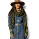 Striped Button Up Cropped K...Wild West Bull Skull Cowboy Tie