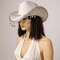 Grab the show-stopper: a dazzling Tassel Sequins Stars White Cowboy Hat with a high curved wide “taco” brim, tall pinched crown, and a silver double-pyramid vibe of sparkle. Triangle-detailed silver sequin brim trim meets long tassels of silver beads, faux pearls, and five-pointed sequin stars around the entire brim. Finished with a thin silver hat band and an adjustable chin fit via inner drawstring liner—perfect for cowgirl-core looks at festivals, concerts, bachelorettes, holidays, and themed events.