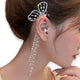 - Celestial Design: Silver ear wrap with adjustable fit, adorned with dangling chains and stars, featuring pink quartz stones.