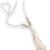 Handcrafted Natural Agate Tassel Long Necklace - Elevate your jewelry collection with a soulful statement piece designed for free-spirited style and natural elegance. This handcrafted necklace features ivory veined agate stone beads, silver accents, and genuine cowrie seashells, creating a unique fusion of coastal charm and western-inspired detail. Finished with a flowing organic cotton tassel, this long 37-inch necklace brings effortless movement and earthy beauty to boho, southwestern, and everyday layered looks.
