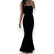 - Flowing Silhouette: A-line maxi construction with non-adjustable thin straps and a cascading ruffle hem adds whimsy.