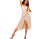- Style: High Rise Asymmetrical Midi Skirt