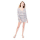- Features: Runs Big, Relax Fit, Long Bell Sleeve, Keyhole Backside Closure, Textile Floral Print, Shorts Romper Outfit