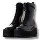 - Features: Matte Vegan Leather Upper, Eight Plate Buckle Straps, Full Back Zip, Rubber Wedge Platform, Tall Knee Height