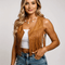 - Style: Cropped Snap Front Faux Suede Fringe Vest