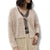 Beige Long Sleeve Crochet Cardigan Sweater - Breezy, boho, and endlessly layerable—this open-knit patchwork cardigan features a relaxed fit with a tie-front bow, V neckline, and long sleeves. The dune-beige yarn and vented stitch create airy texture that works from fall through spring over tanks, tees, dresses, or denim. Patchwork panels nod to crochet/granny-square vibes for cottagecore, fairycore, and western-boho looks.