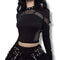 - Style: Long Sleeve Fishnet Cut-Out Gothic Crop Top