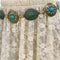 - Bold Concho Design: Features round and oval gold-tone metal links with patina finish and turquoise accents.